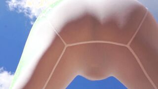 working out in transparent white spandex