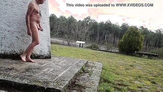 naked walk on a rainy day by the roadside