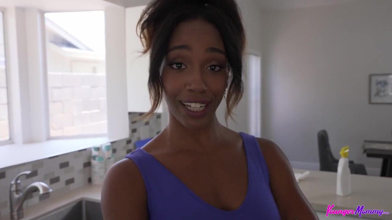 Lacey London and her stepson Tyler Cruise have been dancing around their mutual attraction for far too long. He thinks Lacey is too young to be married to his dad, especially since he's super into her himself. Lacey tells Tyler that she's free use for him, but he doesn't act on it until later. Lacey is cleaning the bathroom and Tyler wants to take a shower. Recalling the free use statement, Tyler pops Lacey's titties out and gives them a squeeze. When Lacey doesn't say anything, Tyler is emboldened to take things further. Dropping to his knees, Tyler lifts Lacey's miniskirt and squeezes her ass. Then he leans in to tongue fuck that juicy pussy.When Lacey is still clearly willing, Tyler drops the towel and slides his cock into his stepmommy from behind. She's clearly loving it as she puts one knee up on the counter for deeper penetration. Then she lays Tyler down on the ground to go for a ride on that fuck stick in reverse cowgirl, followed up by cowgirl. On her knees, Lacey sucks Tyler's cock until he gives her a mouthful of cum that's dribbles down to cover her titties.