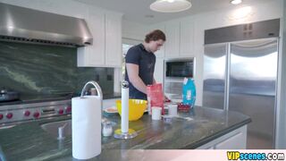 Extra small redhead teen Madie Collins is misbehaving in the kitchen again