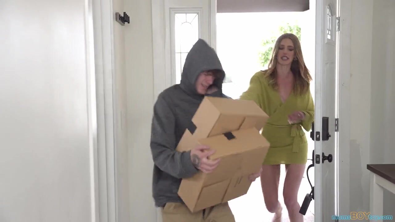 Barbie Feels opens the door to find a porch pirate stealing her packages. She recognizes Spikey Dee as the boy from down the street. In fact, Barbie realizes that he was the boy who was looking down her shirt at Halloween. She recalls what a big hardon Spikey had and has an idea.Popping her big boobies out, Barbie tells Spikey he should feel them. Then she shows him a huge dildo and tells him that either he can be her boy toy or she can masturbate with that. Spikey volunteers as tribute! Popping that nice dick out, Barbie goes to work sucking him down with a deep throat blowjob. She gets to her feet and grabs Spikey by the fuck stick to lead him to the couch for a hardcore lesson.Shoving Spikey onto his back, Barbie straddles him and sinks down onto his erection to ride him in cowgirl. Spikey gets another handful of those jiggling boobies, which turns into a handful of that ass as Barbie gets on her knees for some doggy style action. When she gets on her back, Barbie spreads her thighs to accommodate Spikey and his big dick between them. He pulls out to blow his load on her stomach. As Barbie enjoys the comedown, she tells Spikey to get lost, but to come back tomorrow.