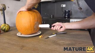 MATURE4K. Mature woman finds he horny stepson masturbating and helps him