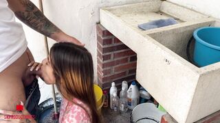 Description: I fuck my best friend's stepsister in the yard of her house while she washes clothes and my best friend is in his room distracted playing pley I take advantage and seduce his stepsister and fuck her
